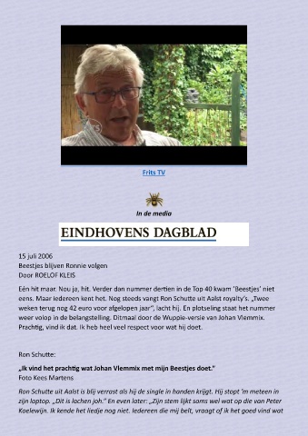 Ron Schutte uit Aalst is blij verrast als hij de single in handen krijgt. Hij stopt ’m meteen in